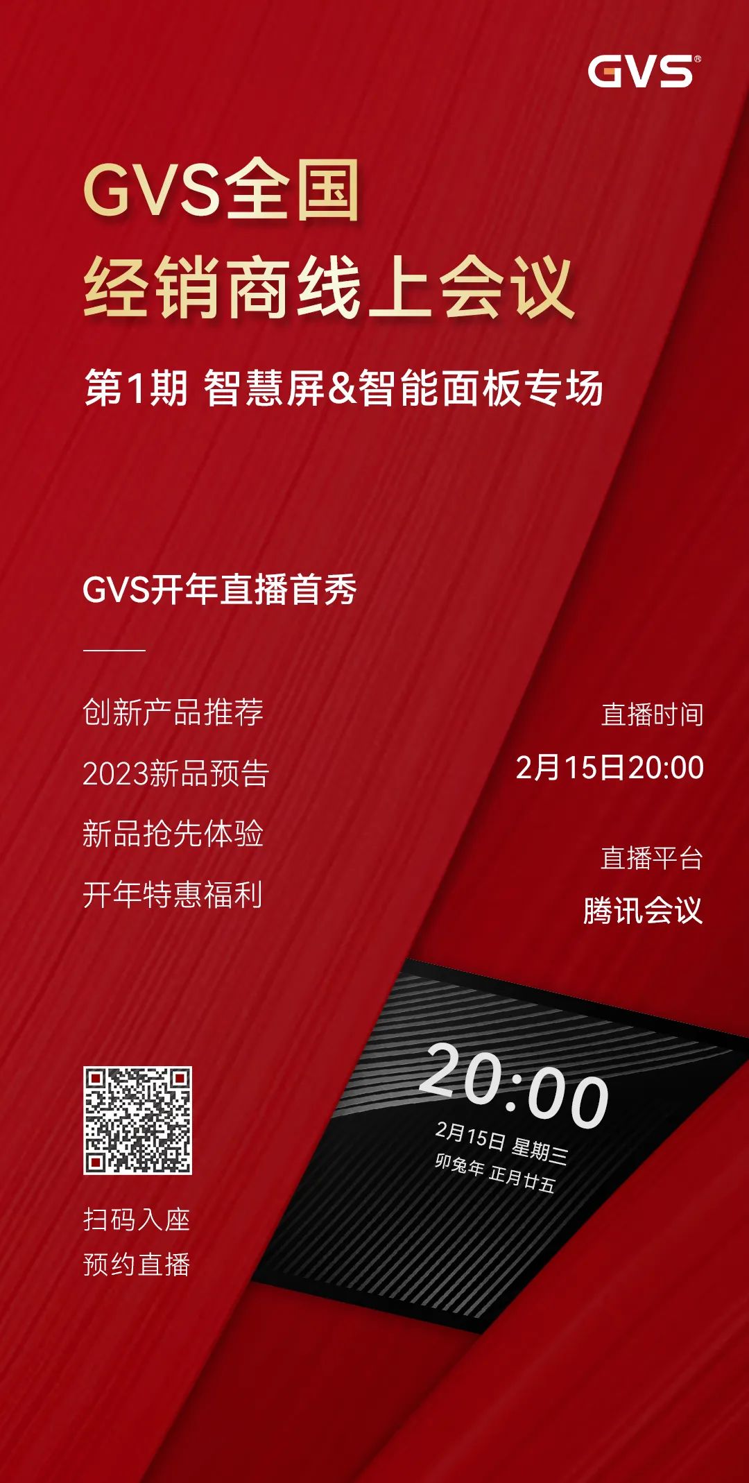除了創(chuàng)新產品推薦和年度新品預告,每場會議我們還將拿出部分新品給大家嘗鮮,現場開展新品體驗活動,并招募產品體驗官。誠邀全國合作伙伴抽空積極參與,也歡迎大家對我司產品提出寶貴的開發(fā)建議,感謝大家的支持與厚愛!2月15日晚8點,鎖定GVS騰訊會議直播間。開年首場分享會,我們不見不散。1.意向客戶請聯系GVS區(qū)域銷售經理報名,審核通過后可獲取線上會議入口。2.更多活動詳情可咨詢我司官方小助手,本次活動最終解釋權歸GVS所有。
